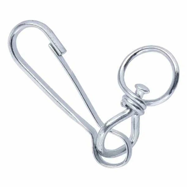 Карабин D 80 мм тип 125 ТА-V пружинный с вертлюгом. Отличается невысокой грузоподъемностью, поэтому применяется для бытовых целей, крепления ремней, веревок, шнуров.Характеристики
