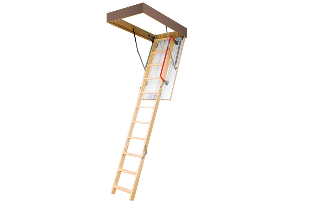 Чердачная лестница FAKRO KOMFORT 70х120 см, высота 280 см с утепленной крышкой обеспечивает удобный доступ к чердачному помещению. Изготовлена из сосны, что обеспечивает экологичность, прочность и долговечность. Металлический поручень служит для безопасности и удобства при эксплуатации лестницы.Характеристики