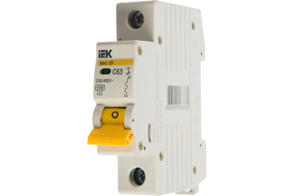 - Авт. выкл. ВА47-29 1Р/63А С, откл.сп. 4,5кА ИЭК