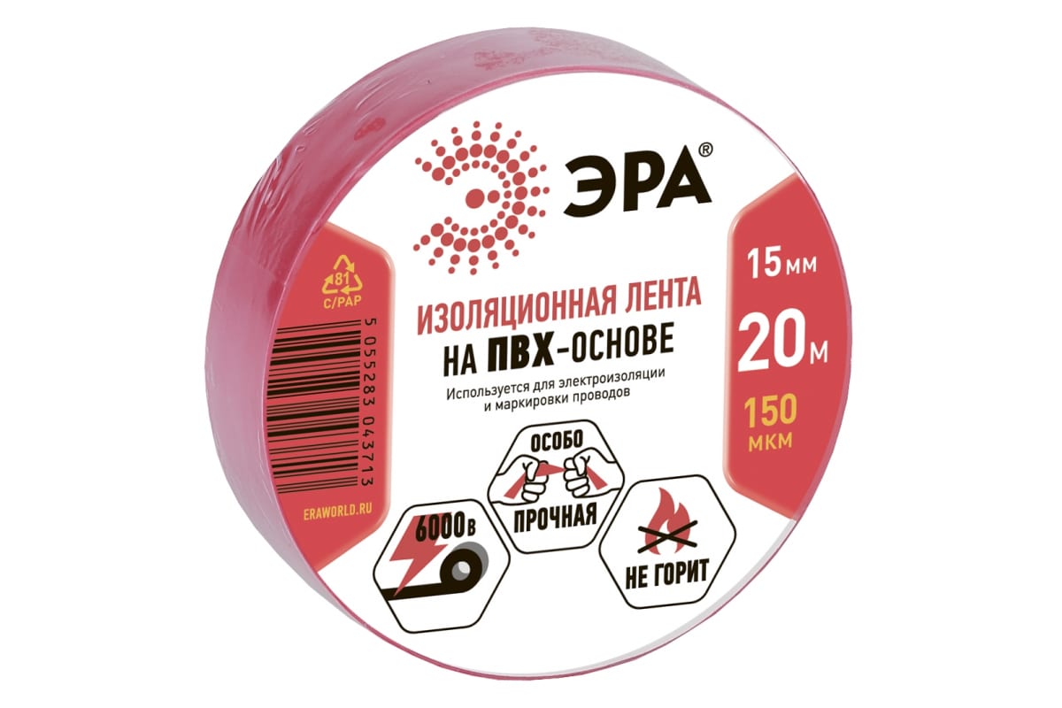 - Изолента ПВХ 15мм*20м ЭРА(красная)