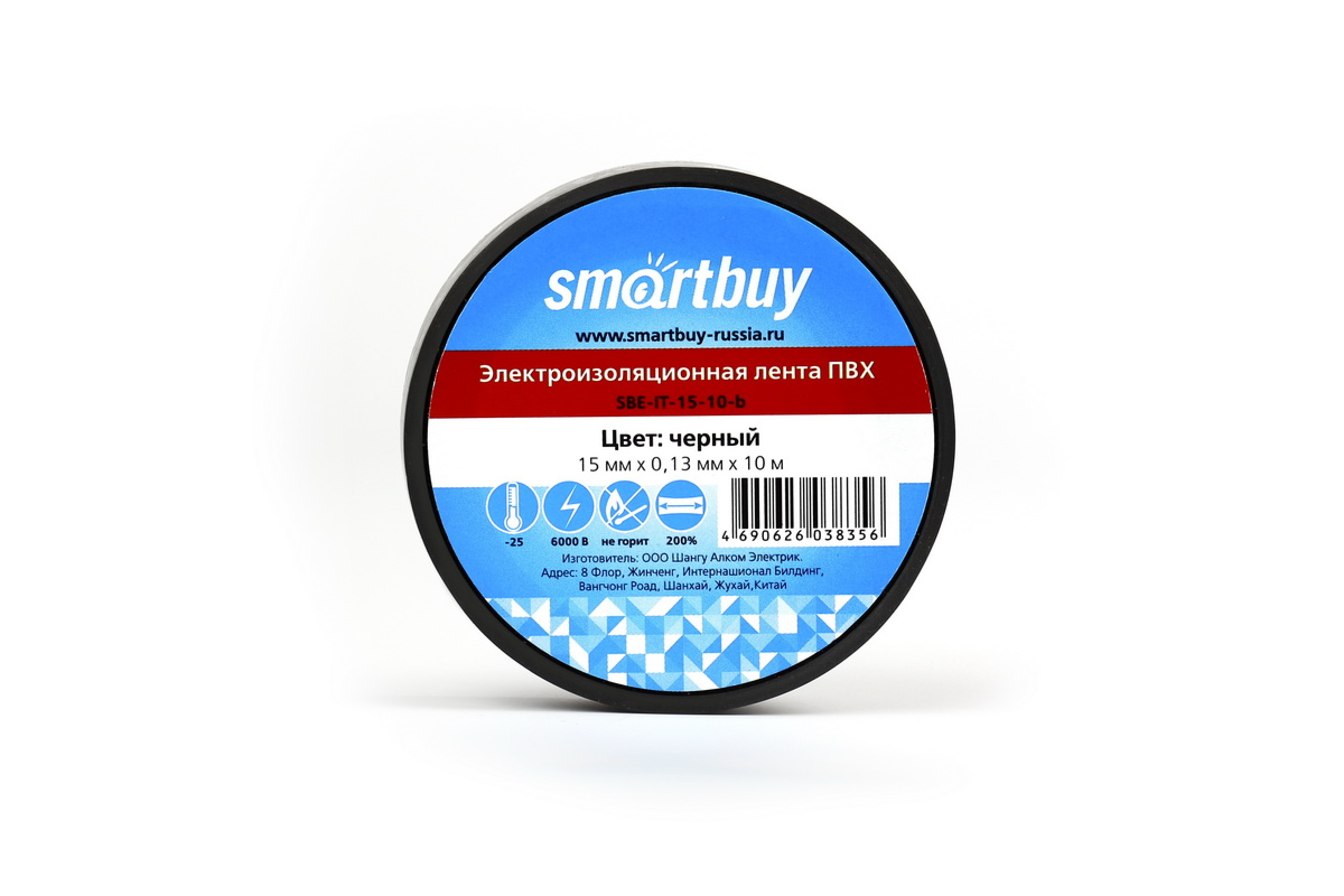 Изолента Smartbuy 0.13х15 мм, 10 метров, черная отличается высокой гибкостью и адгезией. Изделие позволяет проводить разметку проводов, их электроизоляцию или ремонт.Характеристики