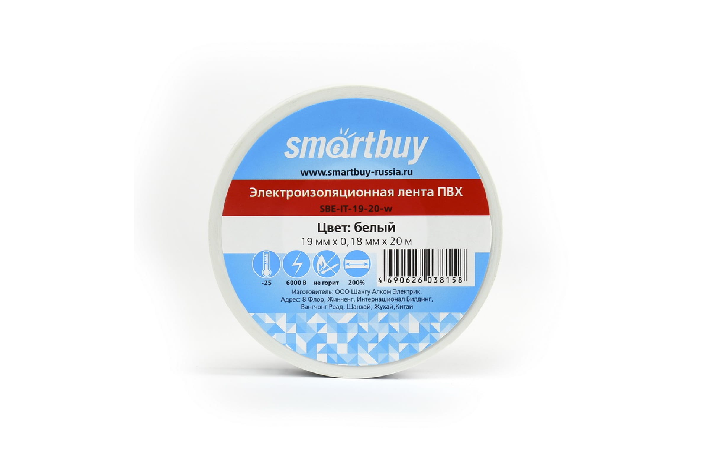 - Изолента Smartbuy 0,18*19мм*20 метров, белая
