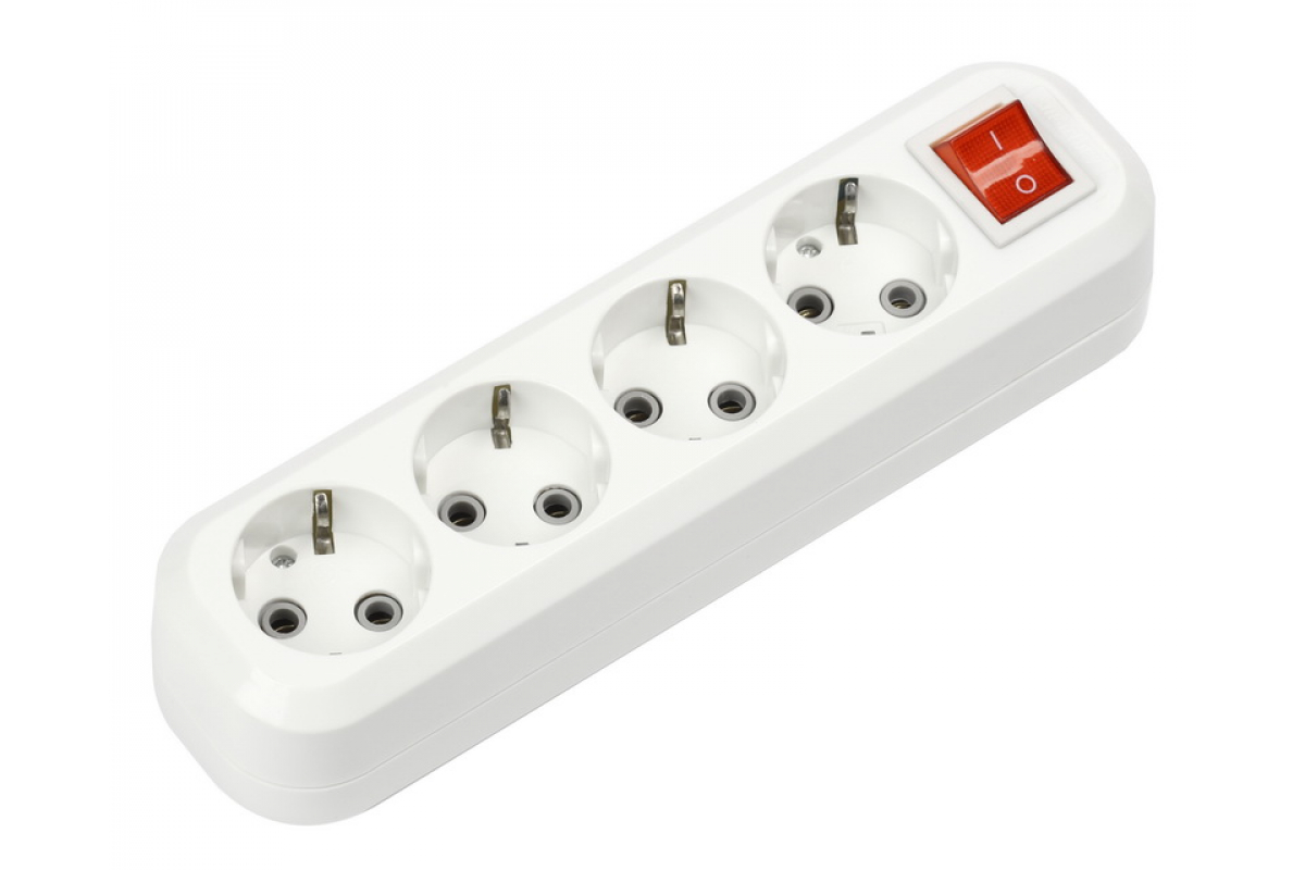 - Колодка 4 гнезда 16А/3,5кВт c выключателем и заземления -100