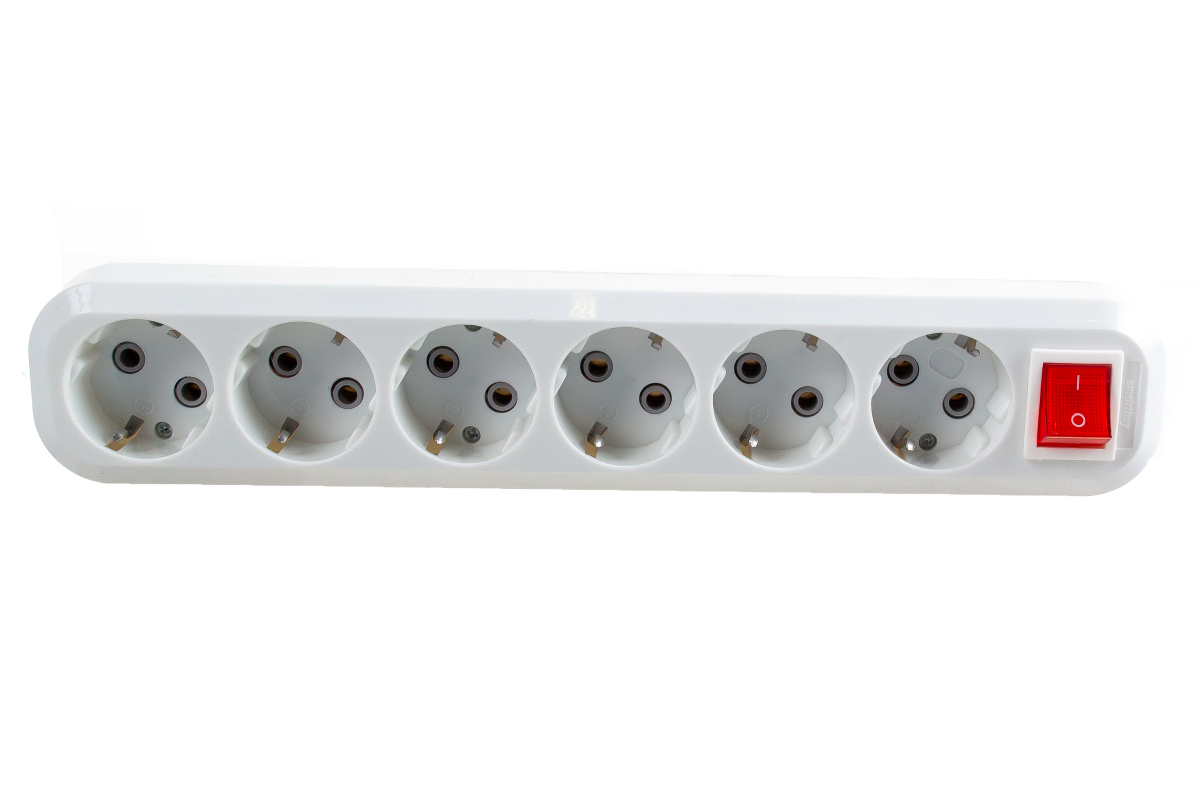 - Колодка 6 гнезда 16А/3,5кВт c выключателем и заземления-60