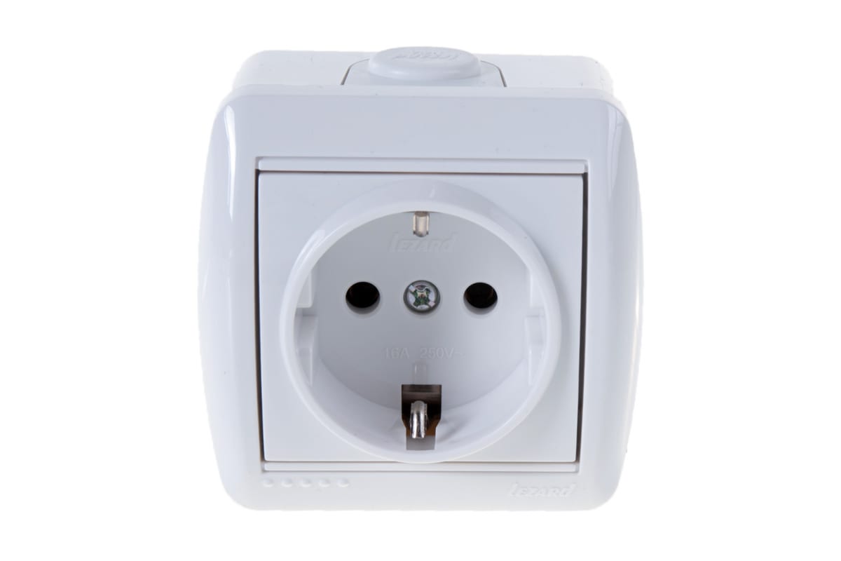 - Розетка Lezard 1-м серия НАТА (накл.) с заземлением белая