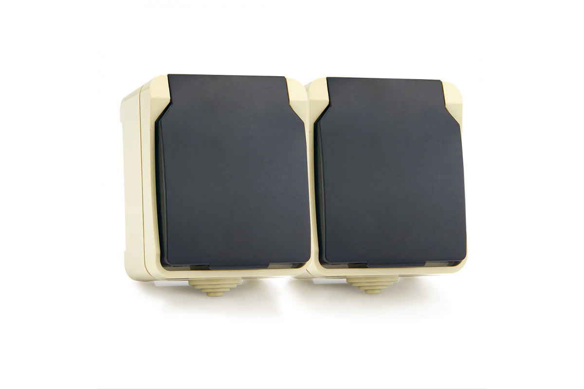 - Розетка Smartbuy 2-м с зазем. 16А с крышкой IP54 "Сатурн"