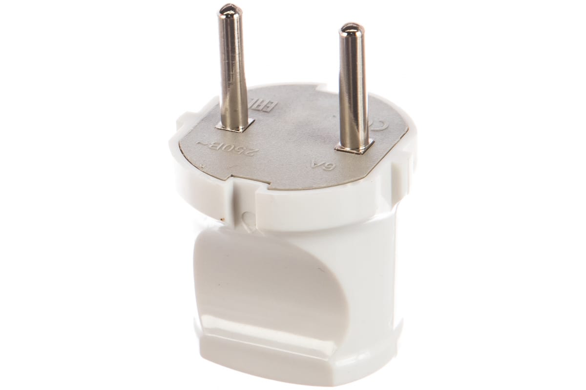 - Вилка UNIVersal прямая без заземления белая 6А 250В