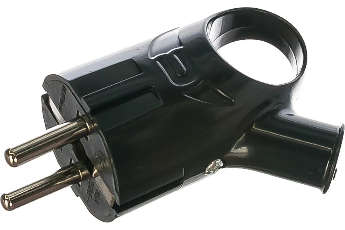 Угловая вилка с ушком, с заземлением, черная предназначена для пользования в бытовых целях, отличается легкостью монтажа, надежностью конструкции и удобством в эксплуатации. Наличие заземления обеспечивает более высокие показатели электробезопасности.Характеристики