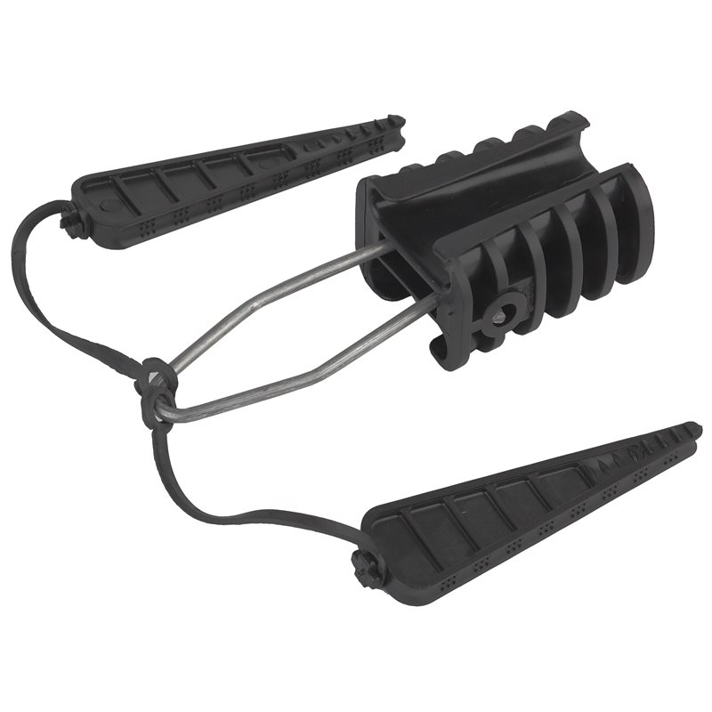 Анкерный клиновой зажим 2х16/4х25 розничная упаковка ЭРА PA25x100 Б0036712 подходит для натяжения проводов СИП-4 на центральных линиях и ответвлениях: Второстепенных линиях; Подключениях к домам. Подключение к промышленным зданиям. Благодаря использованию прочных и армированных материалов существенно возрастает устойчивость зажима к усилию на растяжение. В производстве использованы: армированный полиамид для клиньев и нержавеющая оцинкованная сталь для петли.Характеристики