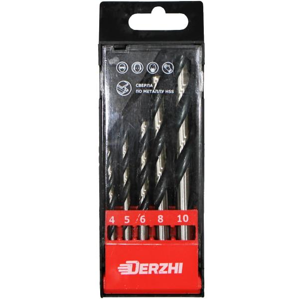 Набор сверл DERZHI по металлу 5шт. (4,5,6,8,10мм) пласт.кор.