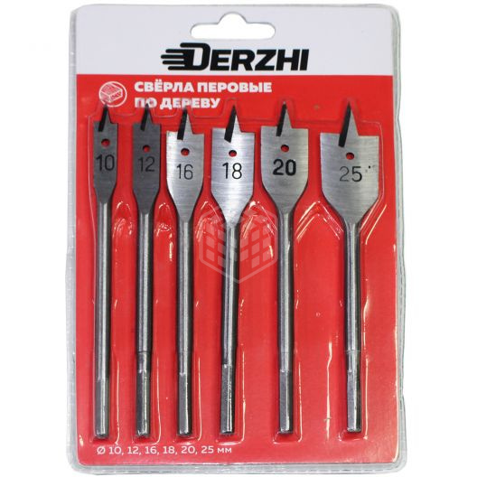 - Сверло DERZHI по дереву перовое в наборе 6 шт.(10,12,16,18,20,25)