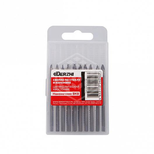 Сверло Derzhi по стеклу и керамике, 10 мм, 5 шт, 8308-012 предназначено для получения отверстий в изделиях из керамики и стекла с помощью дрели, шуруповерта или станка. Рекомендуется использовать охлаждающую жидкость при работе сверлом для более качественного сверления и долгой службы.Характеристики