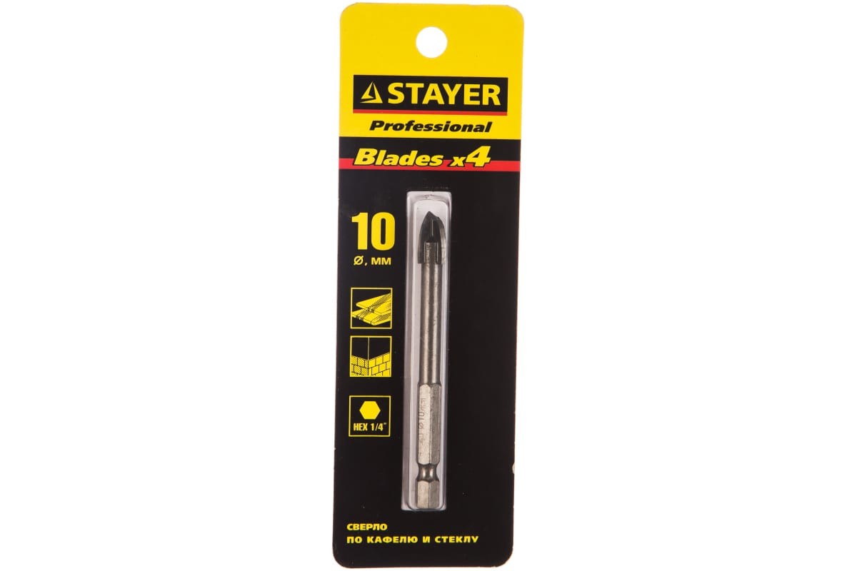 Сверло по кафелю,керамике,стеклу с четырьмя режущими лезвиями STAYER,10мм