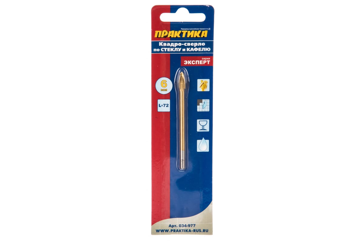 - Сверло по стеклу ПРАКТИКА "Эксперт" Квадро 6х72мм