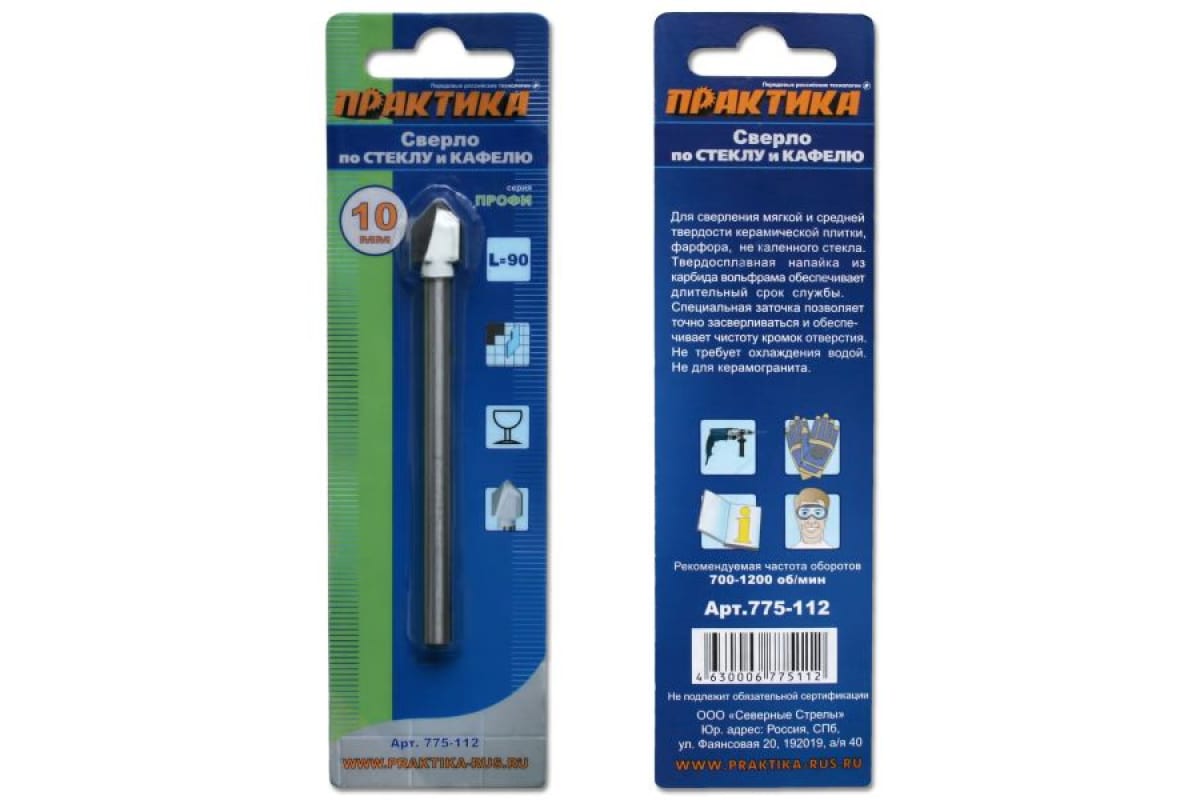 - Сверло по стеклу ПРАКТИКА "Профи" V-тип 10х90мм