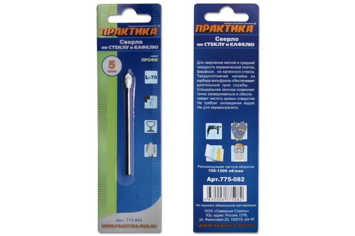 - Сверло по стеклу ПРАКТИКА "Профи" V-тип 5х70 мм