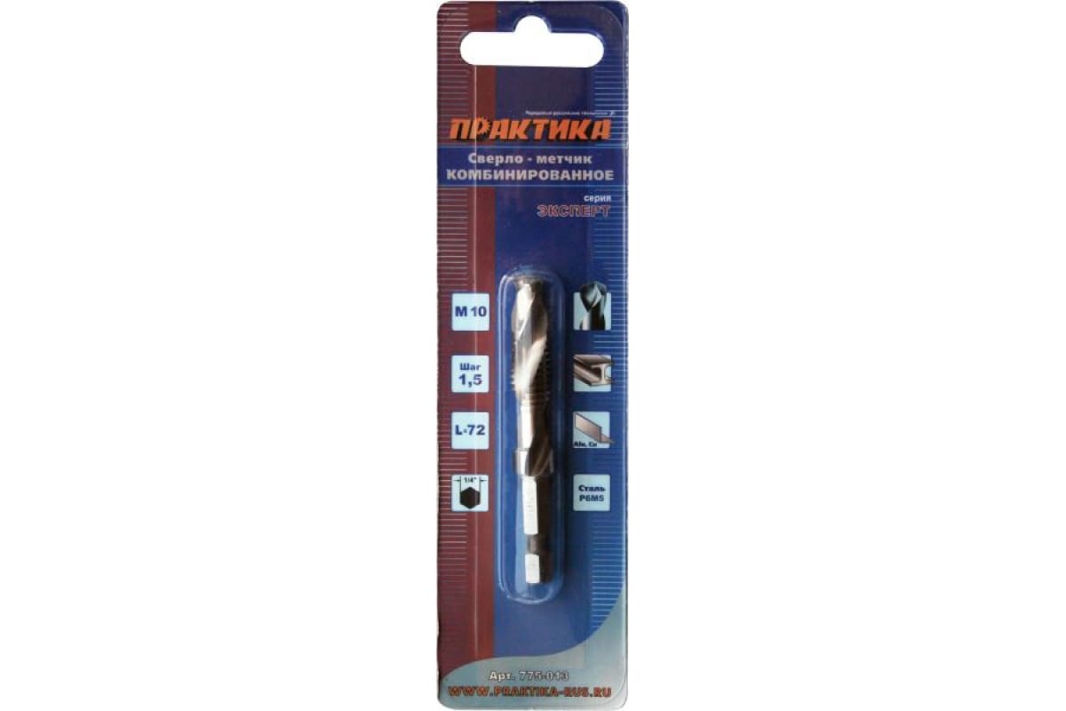 - Сверло метчик ПРАКТИКА М10 шаг 1,5, длина 72 мм, хвостовик HEX 1/4'