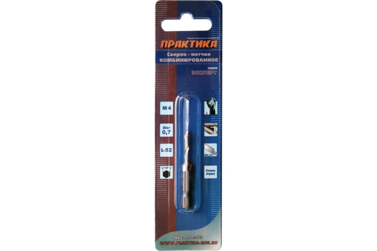 - Сверло метчик ПРАКТИКА М4 шаг 0,7, длина 52 мм, хвостовик HEX 1/4'
