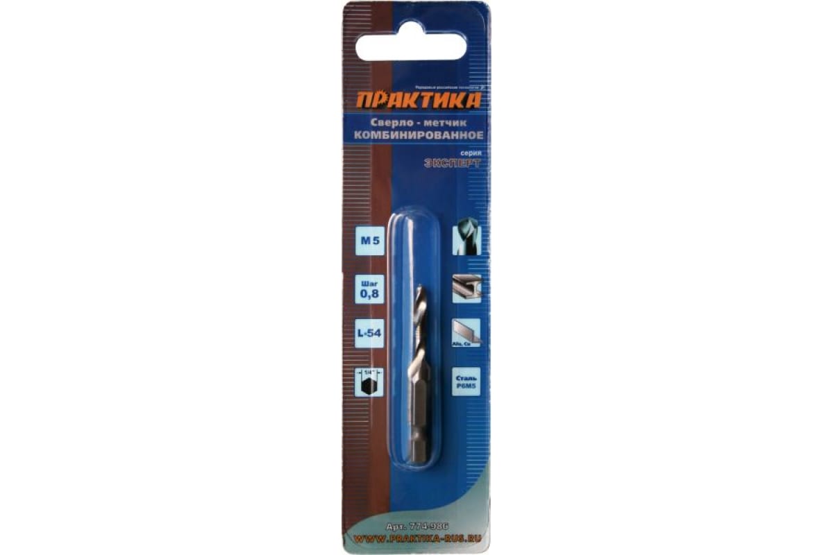 - Сверло метчик ПРАКТИКА М5 шаг 0,8 мм, длина 54 мм, хвостовик HEX 1/4'