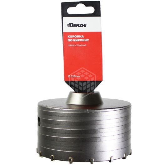 Коронка по кирпичу Derzhi, 110 мм является специальным приспособлением, используемым в качестве оснастки с перфораторами и иными инструментами сверлильной спецификации. По своей конструкции коронка состоит из цилиндрического корпуса из легированной стали 40Cr, на рабочем сегменте которого расположены резцы из карбида вольфрама, закреплённые при помощи высокотемпературного припоя. Посадочная часть выполнена в виде внутренней резьбы М22. Для закрепления на инструменте используются специальные держатели или хвостовики - в зависимости от типа аппарата.Характеристики