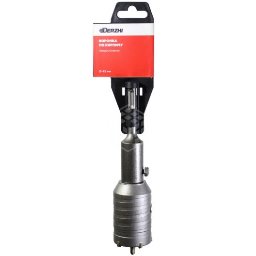 Коронка по кирпичу Derzhi, в сборе, 45 мм предназначена для выполнения отверстий в кирпичных основаниях. Приспособление устанавливается на перфораторы с патроном SDS-plus и применяется, как правило, в безударном режиме. Данная модель снабжена несколькими резцами из карбида вольфрама и имеет центрирующее сверло с твёрдосплавным наконечником, которое позволяет повысить точность сверления и облегчить вхождение в материал. Изделие поставляется в составе коронки с размером посадки М22 и держателя с хвостовиком SDS-plus.Характеристики