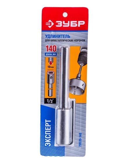 Удлинитель Зубр 29539-140 предназначен для биметаллической коронки на 140 мм. Позволяет сверлить более глубокие отверстия. Также появляется возможность сверлить в труднодоступных местах, там, где без удлинения коронки просверлить отверстие невозможно. С одной стороны удлинитель имеет имбусовый ключ, с другой стороны - механизм крепления с внутренним шестигранником 10 мм.Характеристики
