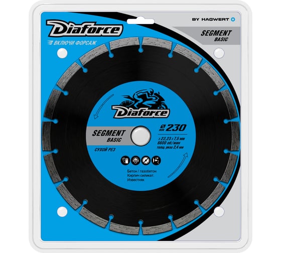 - Диск алмазный сигментый 230*22,23*7,5*2,4мм. сухой рез DIAFORCE SEGMENT BASIC
