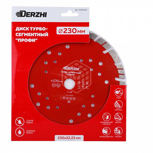 - Диск DERZHI ПРОФИ алмазный турбо-сегмент 230*22,23*2,6*12мм,20 сегм, горяч.пресс.24122230