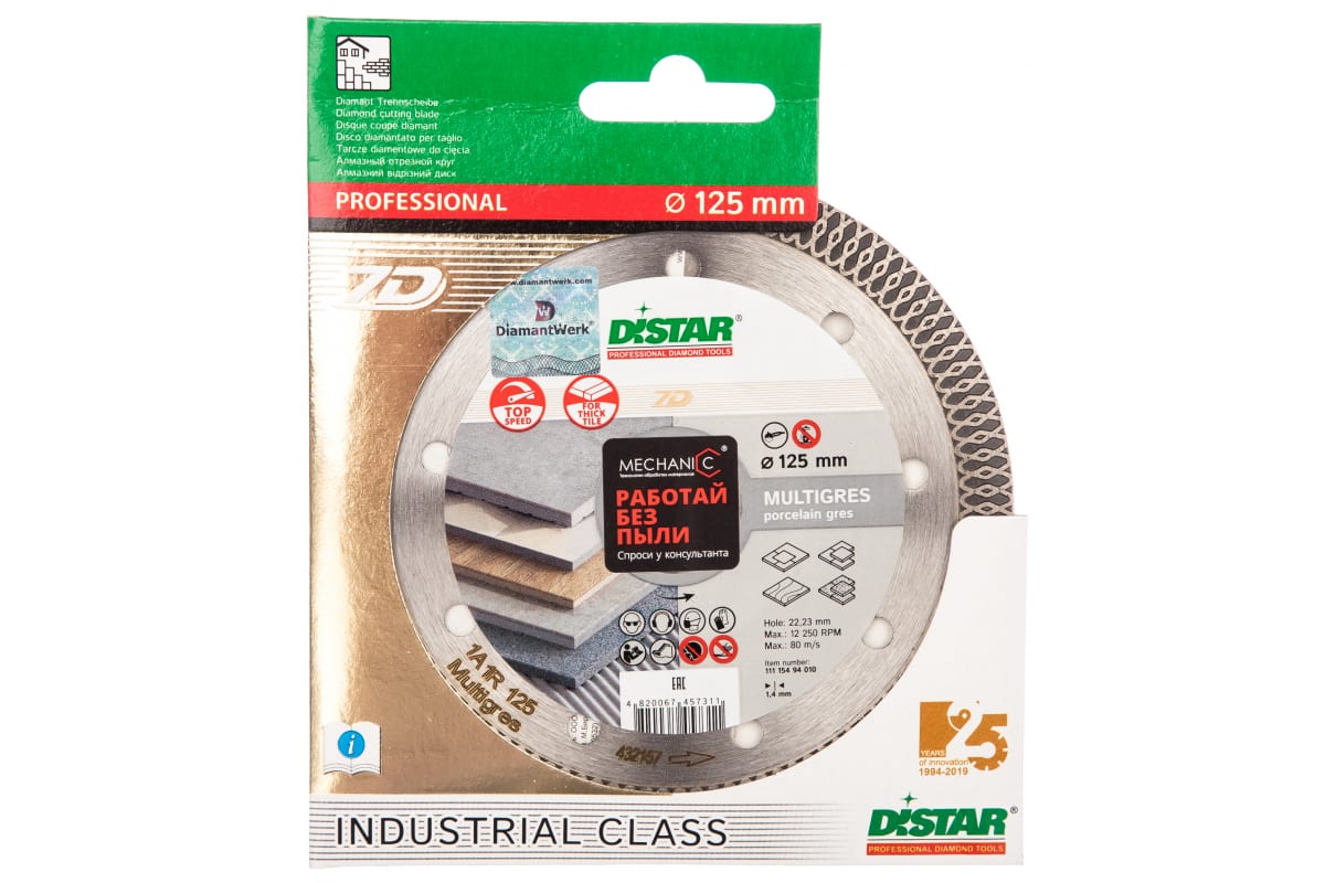 Диск алмазный сплошной Multigres DiStar 11115494010 предназначен для угловых шлифовальных машин и ручных резчиков. Применяется для сухой резки керамической плитки и керамогранита. Диск имеет кольцевое ребро жестокости. Обеспечивает высокую производительность. Высота алмазного слоя – 10 мм.Характеристики