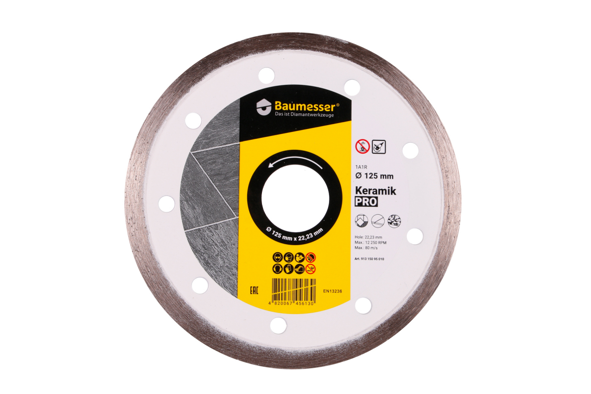 Baumesser Universal со сплошной алмазной кромкой предназначен для качественного реза настенной и напольной керамической плитки с высокой скоростью.Характеристики
