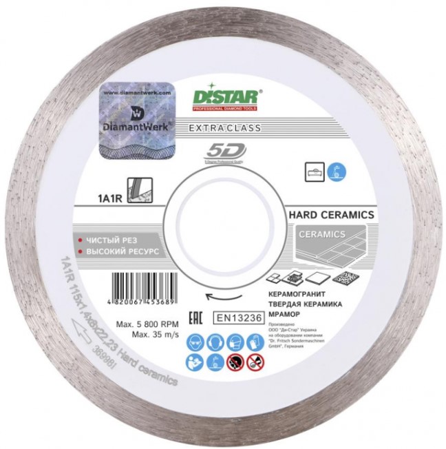 Диск алмазный сплошной Hard ceramics DiStar предназначен для плиткорезных станков. Применяется для сухого/мокрого реза керамической плитки и керамогранита с декоративным покрытием. Обеспечивает чистый рез. Диск обладает высоким ресурсом.Характеристики