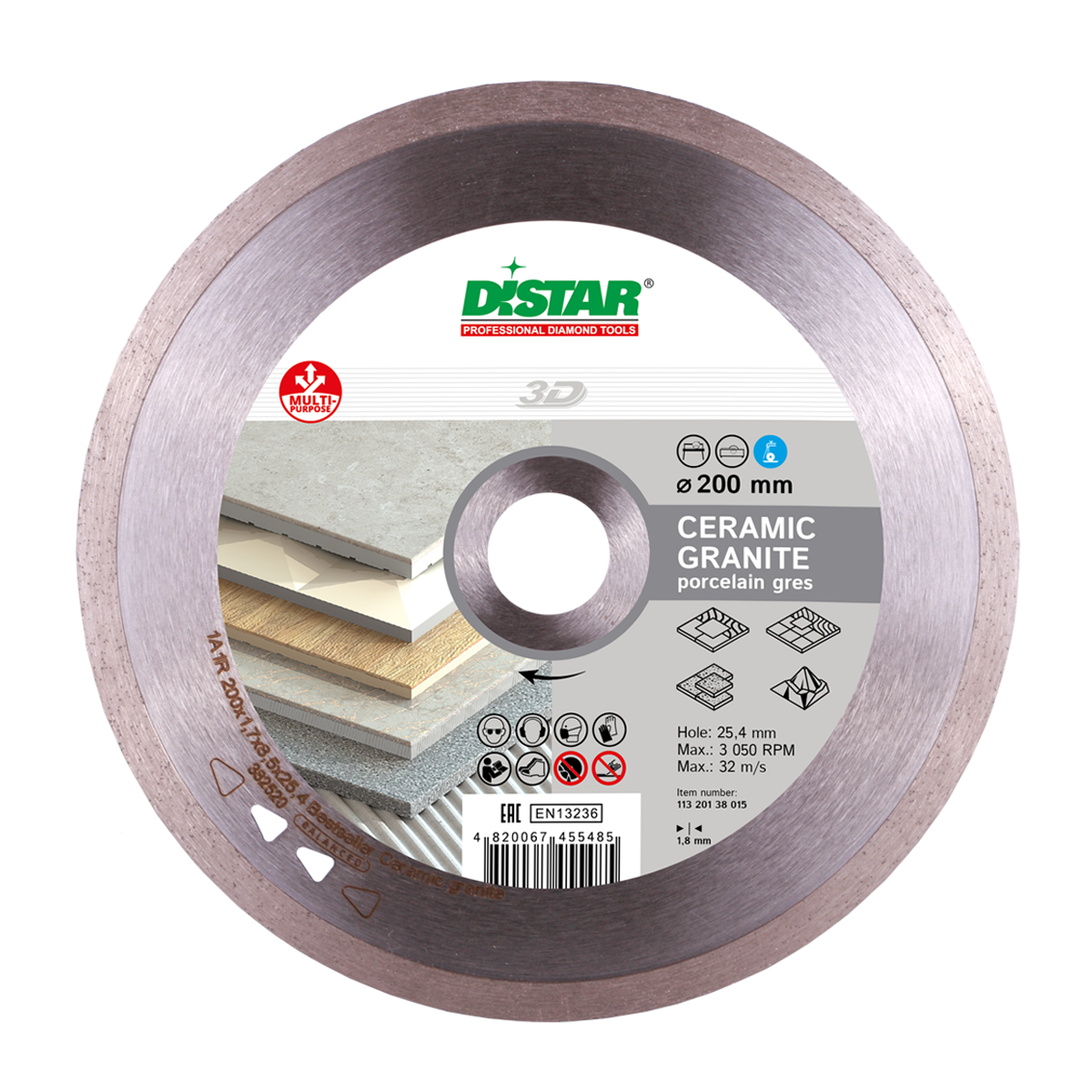 Алмазный круг DISTAR 1A1R BESTSELLER CERAMIC GRANITE является представителем класса 3D, среди сегмента недорогих инструментов для обработки плитки и керамогранита под средством мокрого способа. Прекрасно проявил себя в работе с настенной плиткой, всеми видами керамики и керамогранита, мрамором.Характеристики