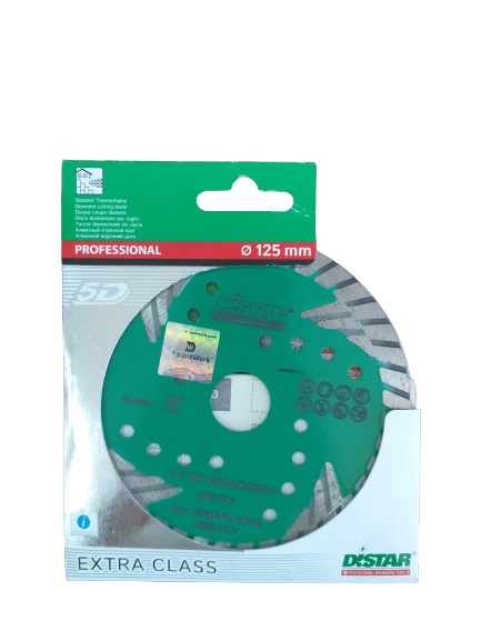 Алмазный диск для ручных УШМ от компании "Ди-стар" 1A1R 125 TURBO ELITE DUO представляет собой специализированный турбированный круг, режущий все виды гранита, прочные кварциты, литой бакор и кирпич. Используется на машинах с допустимым диаметром диска 125 мм., средними и малыми мощностями. Только сухой рез, также используется в качестве фрезы.Характеристики