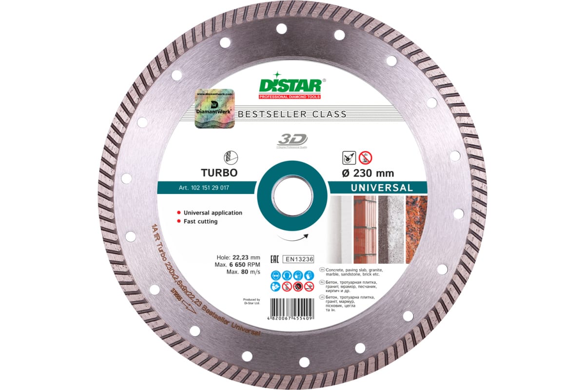 - Круг алмазный: 1A1R Turbo 230*2.6*9*22.23 Universal BESTSELLER