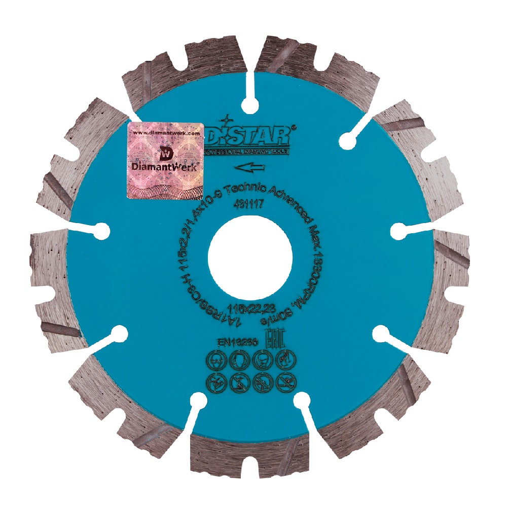 Сегментный отрезной диск Technic Advanced является прекрасным примером соотношения цены и качества. Данный диск предназначен для работы с бетоном, в том числе и слабоармированным, с тротуарной плиткой, кирпичом, пенобетоном, песчаником и известняком. Несмотря на его универсальность, Вы увидите высокое качество в работе. Ресурс и скорость Technic Advanced также на высшем уровне. Он является хитом продаж и оправдывает ожидания как профессионалов, так и любителейХарактеристики