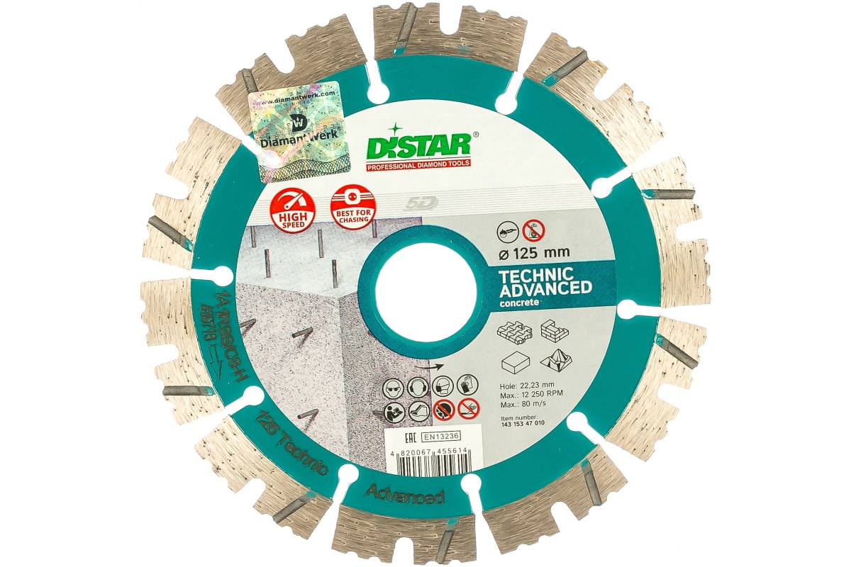 Диск Technic Advanced DiStar 14315347010 предназначен для угловых шлифовальных машин и ручных резчиков. Применяется для сухого реза по бетону, граниту, кирпичу, мрамору, песчанику и тротуарной плитке. Диск обладает высокой скоростью резания. Алмазный слой – 11 мм. Количество сегментов – 10 шт.Характеристики