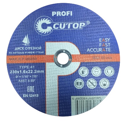 - Диск отрезной по металлу и нержавеющей стали Cutop Profi 230*1,6*22.2мм