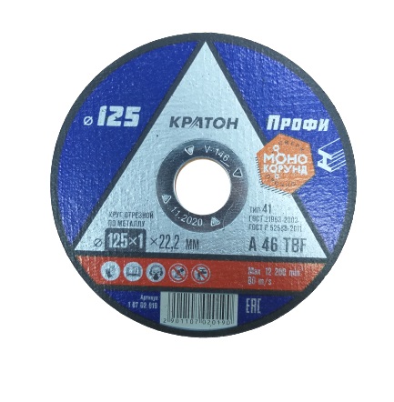 - Круг отрезной абразивный КРАТОН по металлу 125*1,0*22,2мм