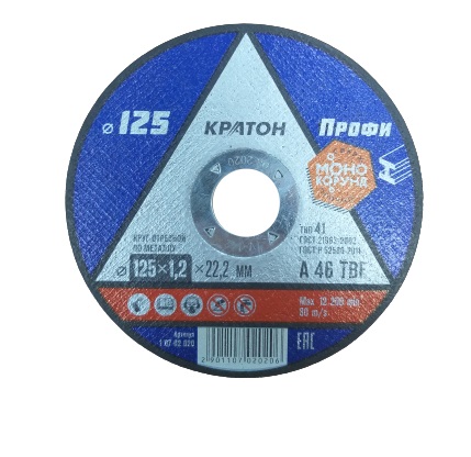 - Круг отрезной абразивный КРАТОН по металлу 125*1,2*22,2мм