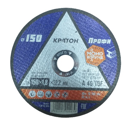 - Круг отрезной абразивный КРАТОН по металлу 150*1,8*22,2мм
