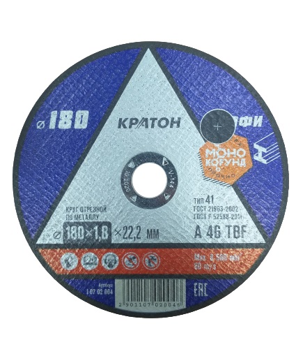 - Круг отрезной абразивный КРАТОН по металлу 180*1,8*22,2мм