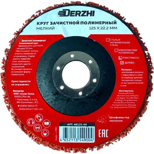 - DERZHI Круг зачистной полимерный для УШМ мелкий 125х22,2мм(оранжевый)