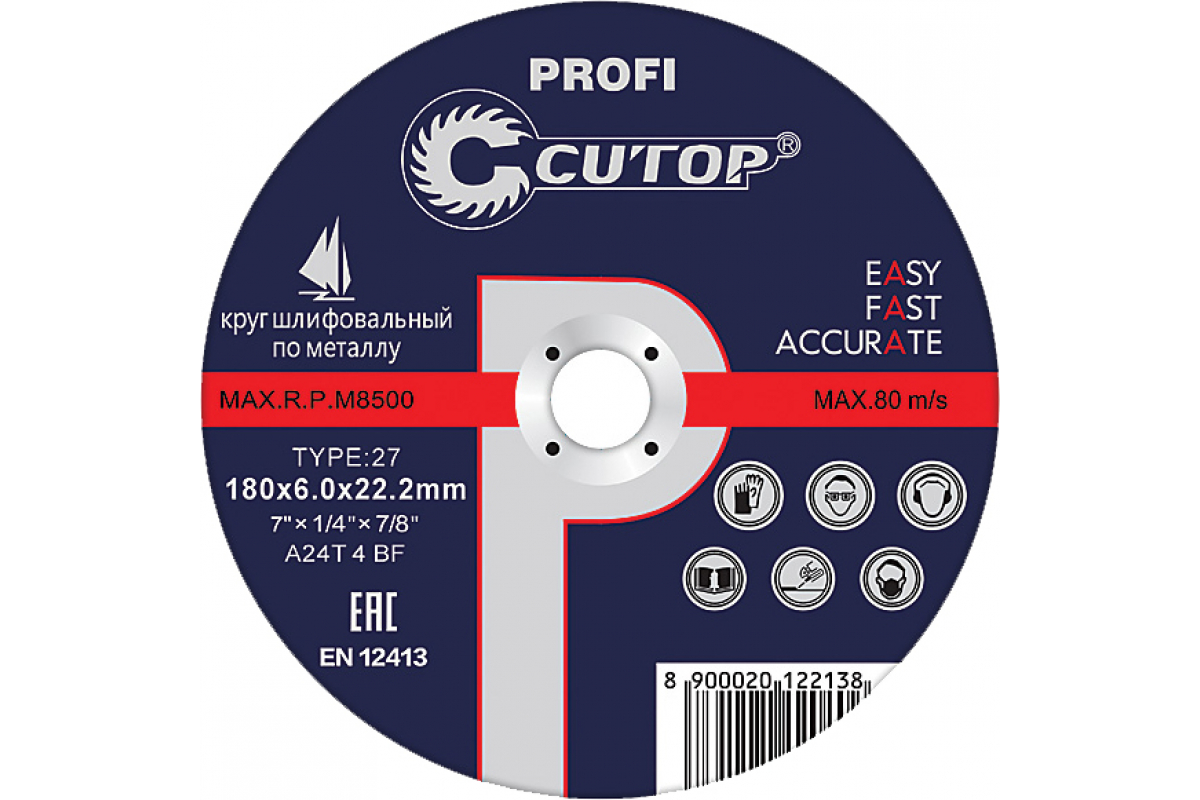 - Диск шлифовальный по металлу Cutop Profi 180*6*22.2мм