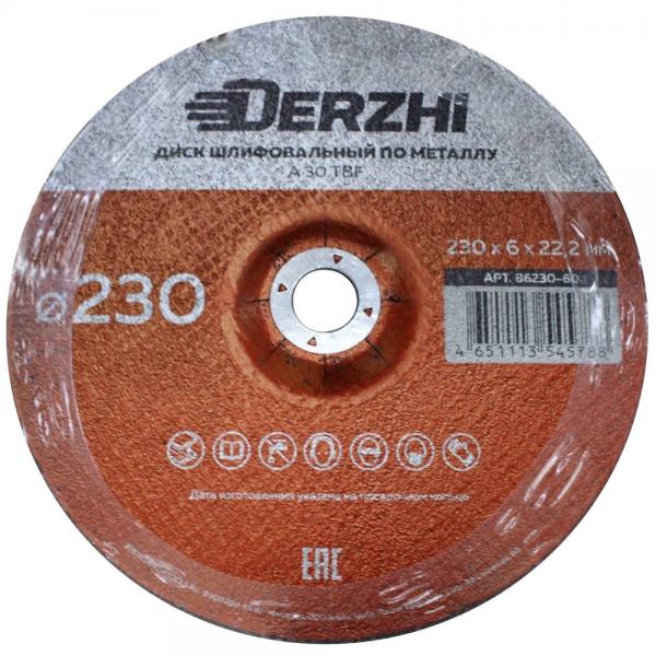 Диск шлифовальный по металлу DERZHI 230*6,0*22,2мм 86230-60