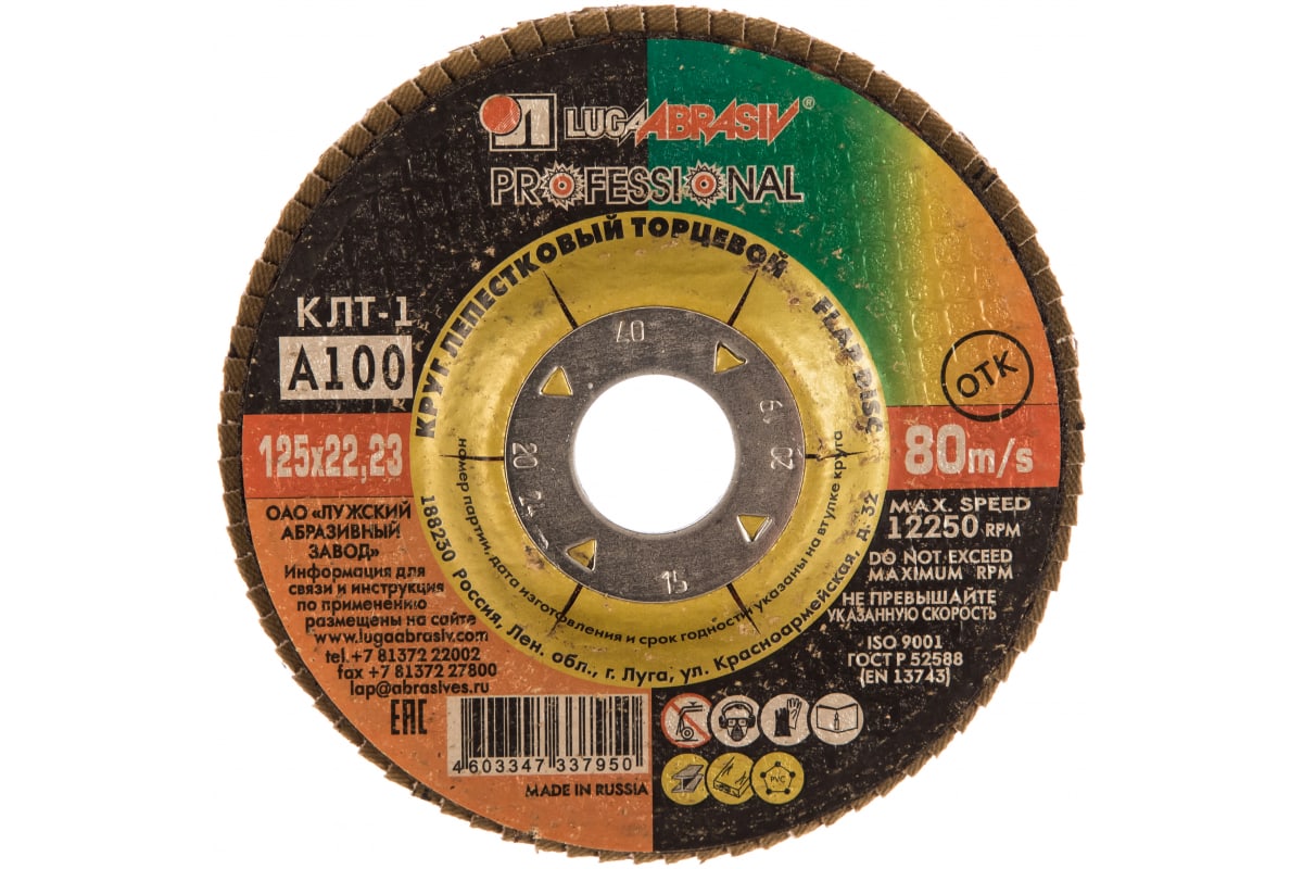 Круг лепестковый торцевой плоский КЛТ1 Luga-Abrasiv D91012522140160 предназначен для ручных шлифовальных машин. Применяется для плоского шлифования, обработки кромок и сварных швов деталей и конструкций из различных марок сталей, цветных металлов и древесины. Круг работает тихо, устойчиво, без прижогов, оставляя холодными обработанные поверхности, обеспечивает максимальный съем материала.Характеристики