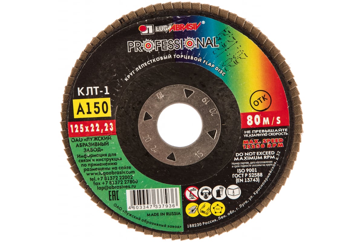 Круг лепестковый торцевой плоский КЛТ1 Luga-Abrasiv D91012522140100 предназначен для ручных шлифовальных машин. Применяется для плоского шлифования, обработки кромок и сварных швов деталей и конструкций из различных марок сталей, цветных металлов и древесины. Круг работает тихо, устойчиво, без прижогов, оставляя холодными обработанные поверхности, обеспечивает максимальный съем материала.Характеристики