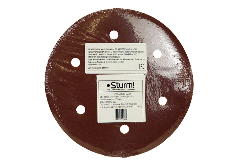 - Круг шлифовальный абразивный NWS6010SL-90220,d=225мм, зерно 220, 8 отв.