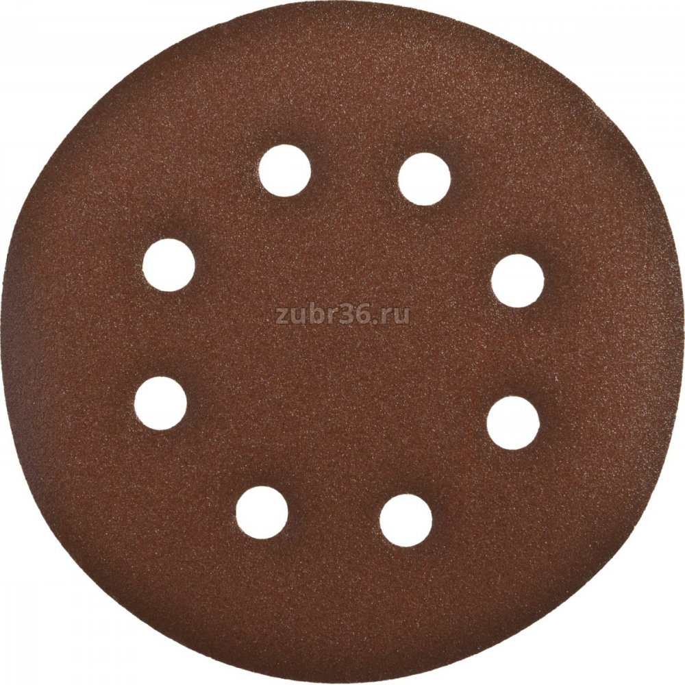 - Круг шлифовальный ЗУБР "СТАНДАРТ" из абразивной бумаги на велкро основе, 6 отв, Р240, 150мм, 5шт