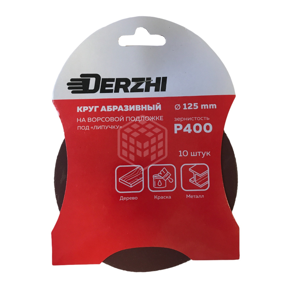 Шлифкруг DERZHI без перфорации Р400 под липучку 125мм 8873874