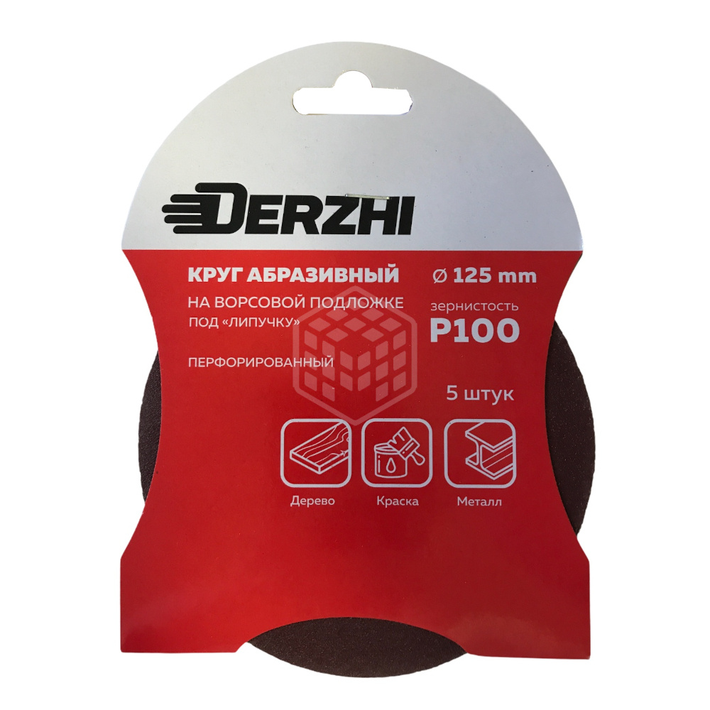- Шлифкруг DERZHI перфорированный Р100 под липучку 125мм (5 шт) 8873805